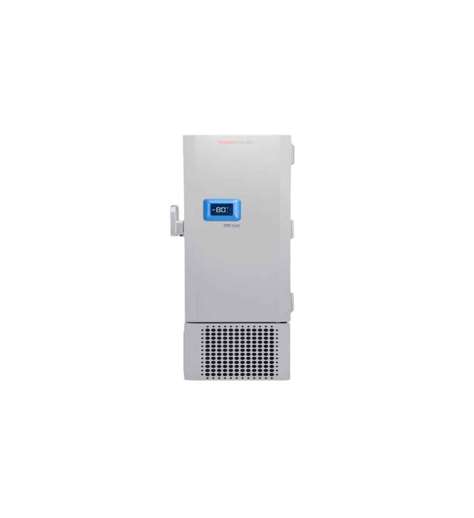 Description: The Thermo Scientific TDE Series Ultra-Low Temperature (ULT) -80°C Freezers provide sustainable and reliable sample security, utilizing H-drive hydrocarbon technology for high energy efficiency and fast temperature recovery. Designed for the modern lab, they feature a quiet operation (under 53 dBA) and an intuitive HIC touchscreen for user-friendly control and monitoring. These high-performance upright freezers ensure superior sample protection with low temperature variation across the entire cabinet.
